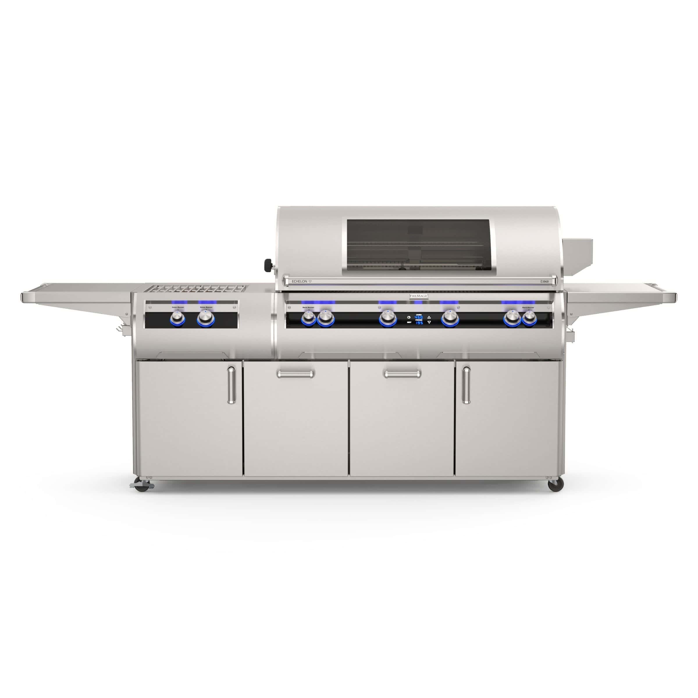 When only the best will do, our flagship Fire Magic® Echelon Diamond combines the ultimate in performance, beauty and innovation. With sleek lines highlighted by a modern black glass control panel including a digital touchscreen operation with blue tooth remote capability. Cast stainless steel burners power an innovative heat distribution system topped with patented Diamond Sear cooking grids to truly elevate the outdoor cooking experience. The Echelon Diamond defines luxury in grilling.