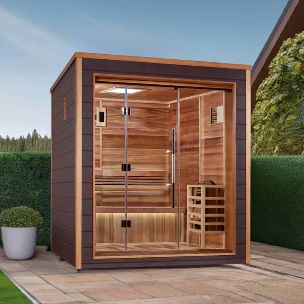 With a Golden Designs all-weather exterior outdoor traditional sauna, you can turn that dream of your very own home spa into a reality. Even where space is at a premium, you can still enjoy the good life in the form of a delightfully relaxing and invigorating steam sauna in the comfort of your own home. Our Modern Series brings even more relaxation with an all-natural Canadian Red Cedar interior finish, providing an invigorating rich aroma to your sauna session.