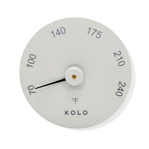 Installing the Kolo Fahrenheit Thermometer is a seamless process, and its sleek design integrates into any sauna aesthetic. Whether you prefer a mild heat for a gentle sweat or a higher temperature for a more invigorating experience, this thermometer empowers you to create a personal sauna environment tailored to your exact specifications.