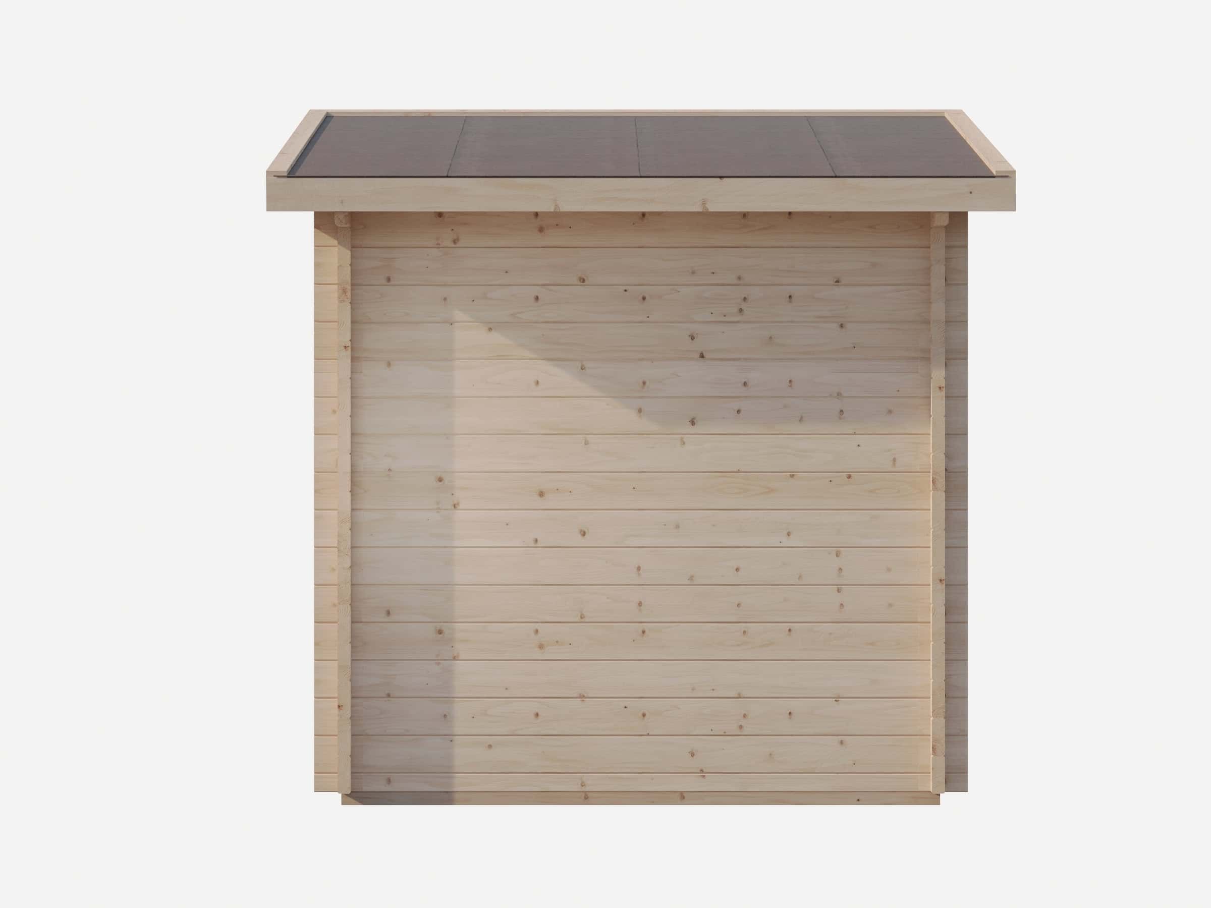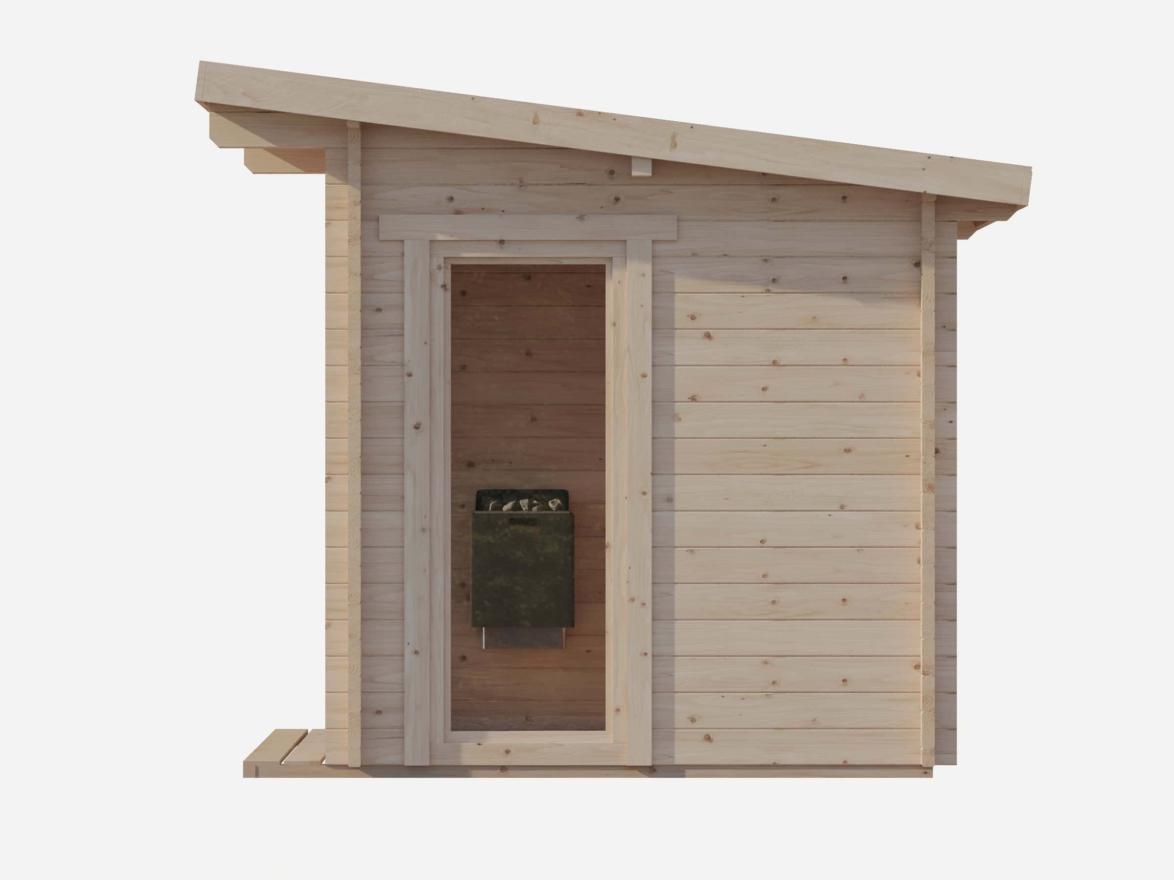 - Wood: Nordic Spruce for the wall and ceiling, Knotless Aspen for the bench