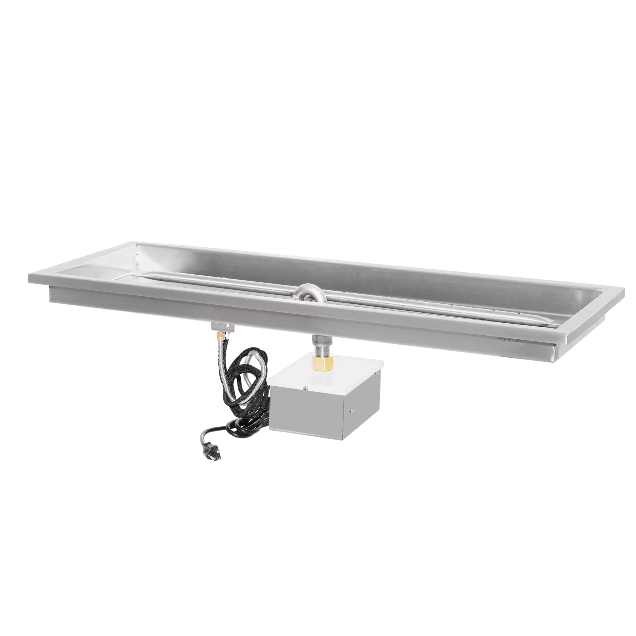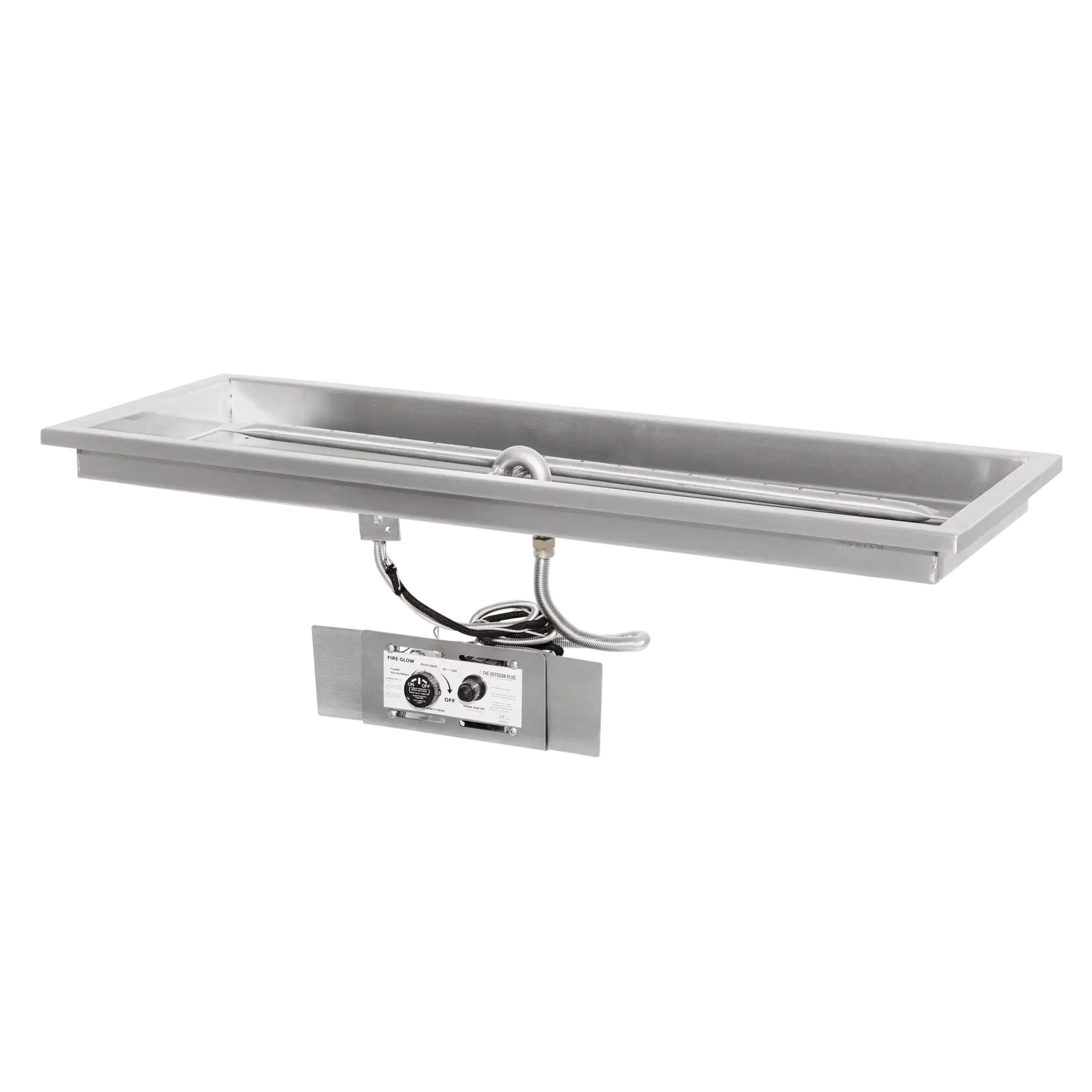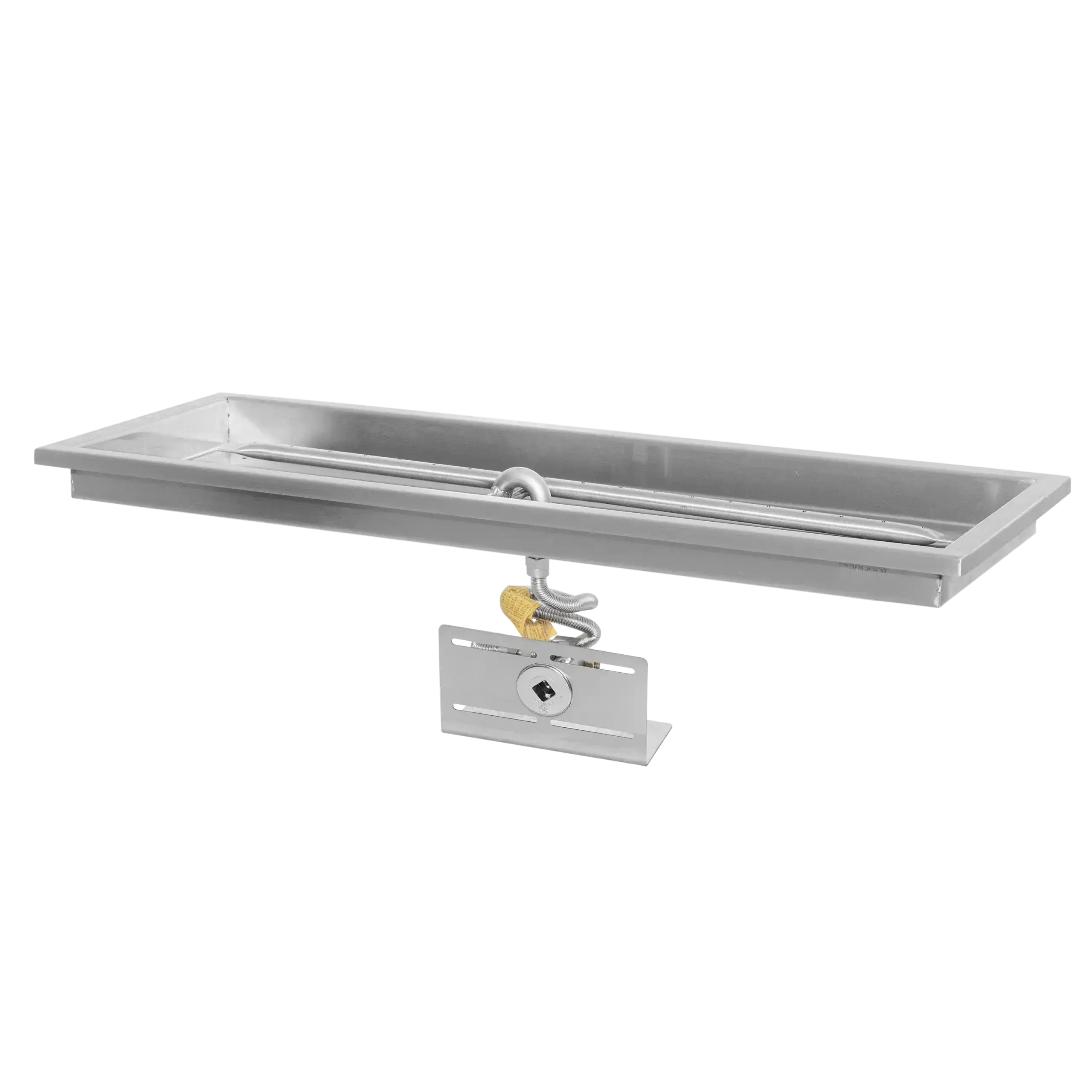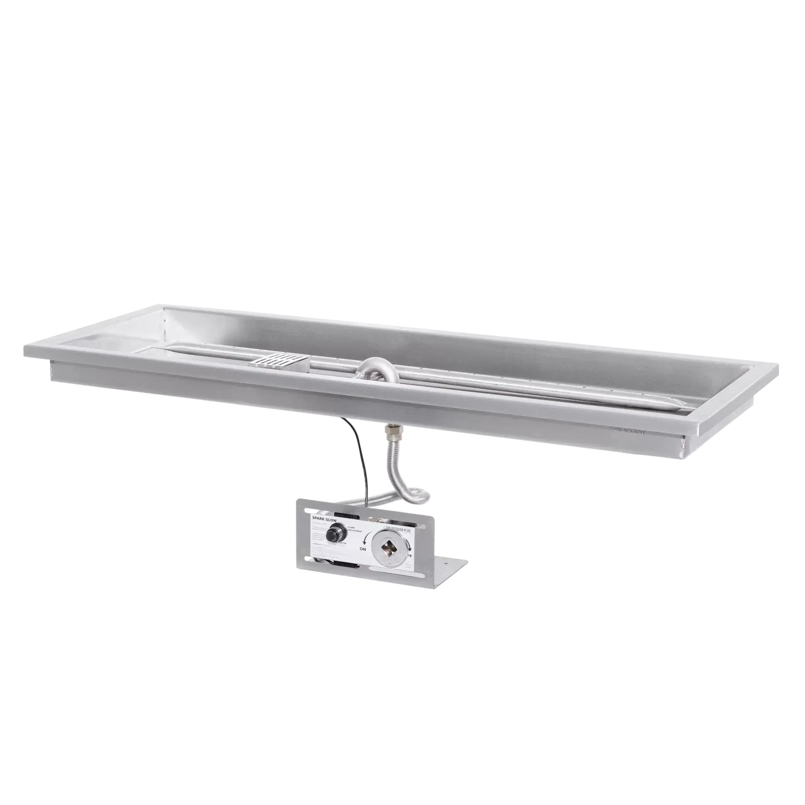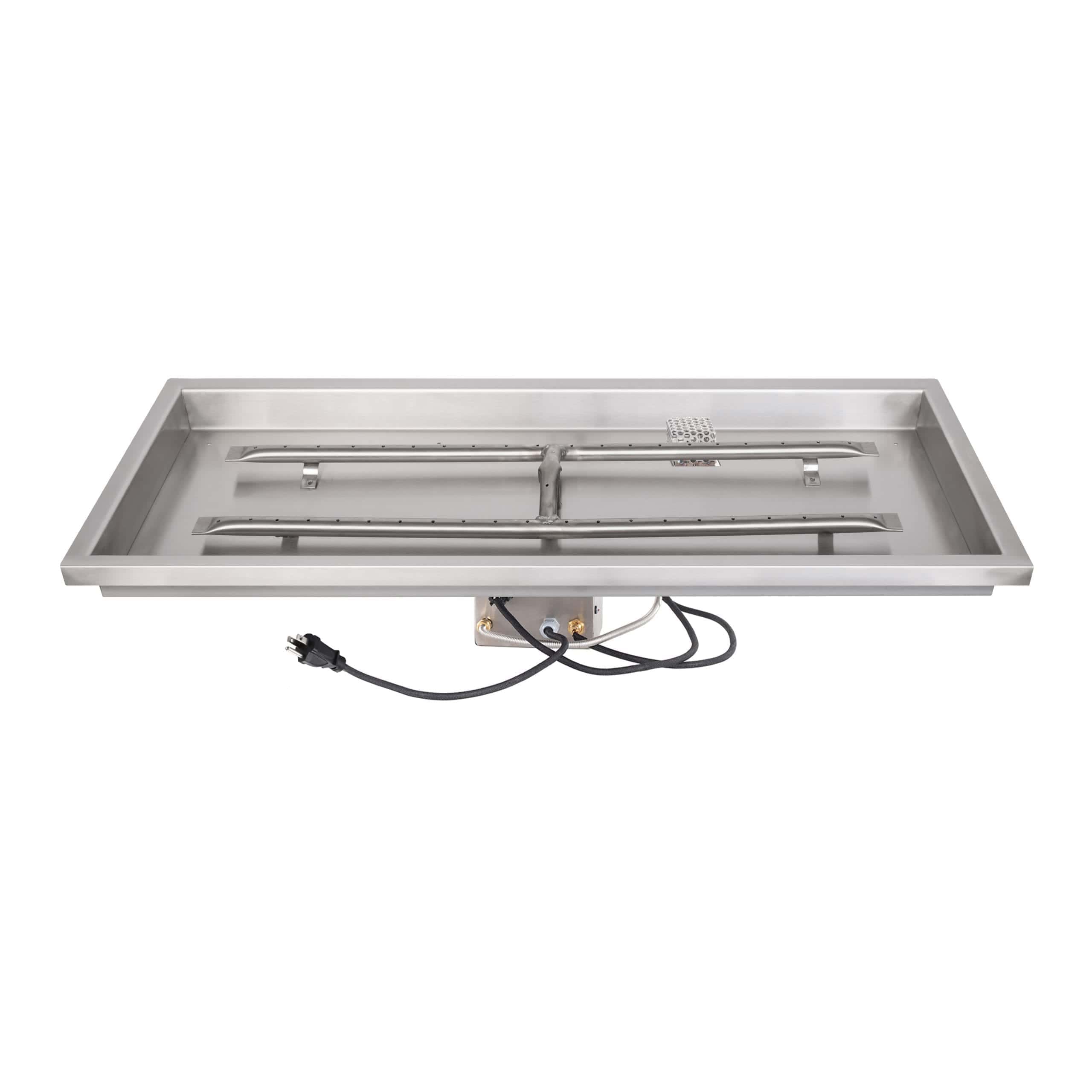 The Raised Lip Rectangular Drop-In Pan by The Outdoor Plus is a heavy-duty fire pit component designed for easy installation and maximum durability. Handcrafted in the USA from 304-grade stainless steel, this pan features a 1-inch outer lip that allows it to rest securely on the ledge of your fire pit enclosure. The “raised lip” center design is specifically engineered to keep water and debris away from the burner, ensuring superior drainage and protecting the gas system. Built to withstand the elements without warping, this professional-grade pan provides a clean, finished look for any custom rectangular fire feature.