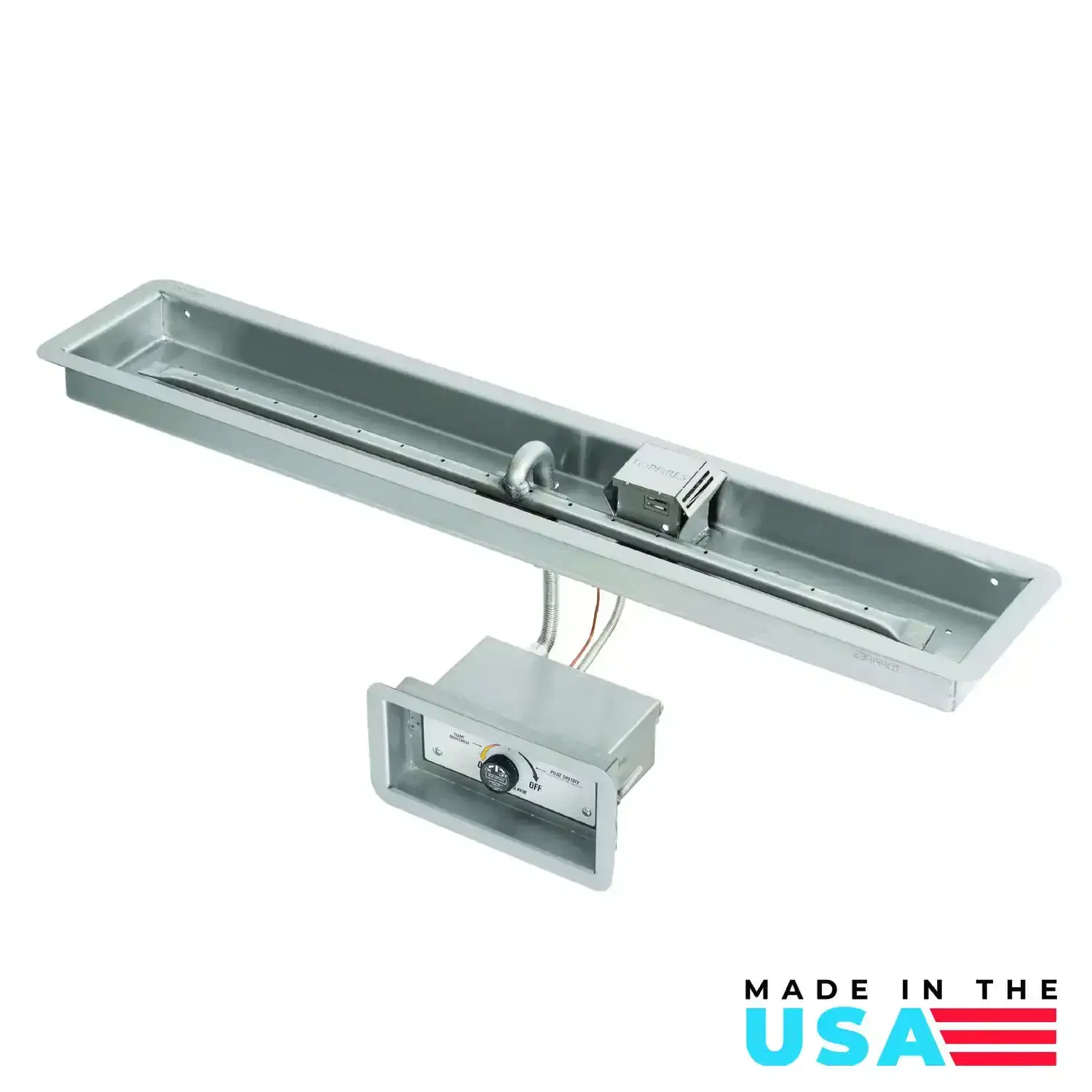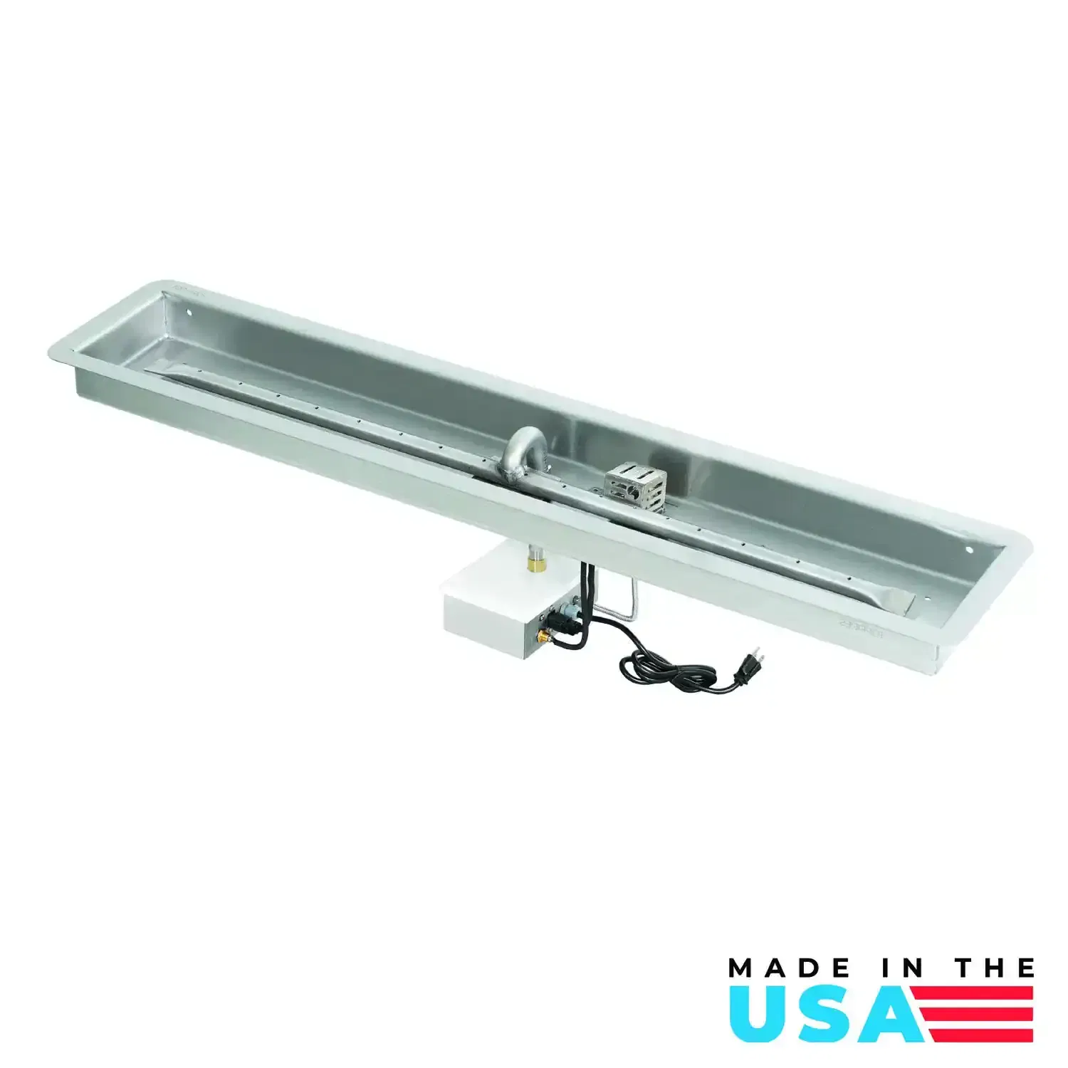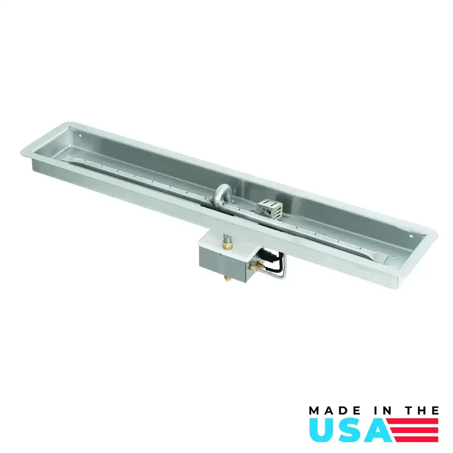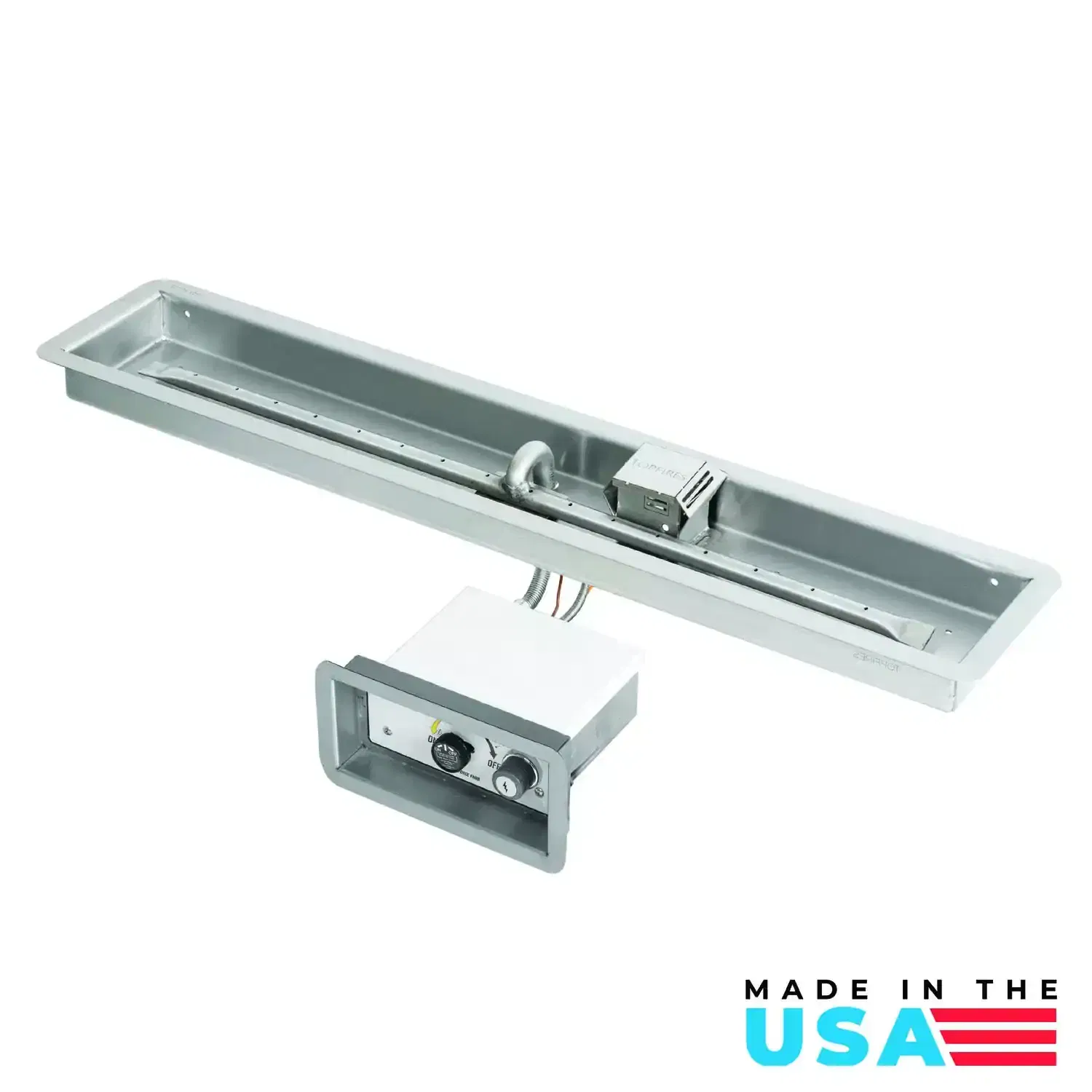 Handcrafted in the USA from high-grade 304 stainless steel, the linear burner is engineered for durability and a consistent, elegant flame. Available in multiple sizes and ignition types—from manual match-lit to advanced CSA-certified electronic systems—this versatile kit includes a lifetime warranty on the burner, ensuring it remains a stunning focal point for years to come.
