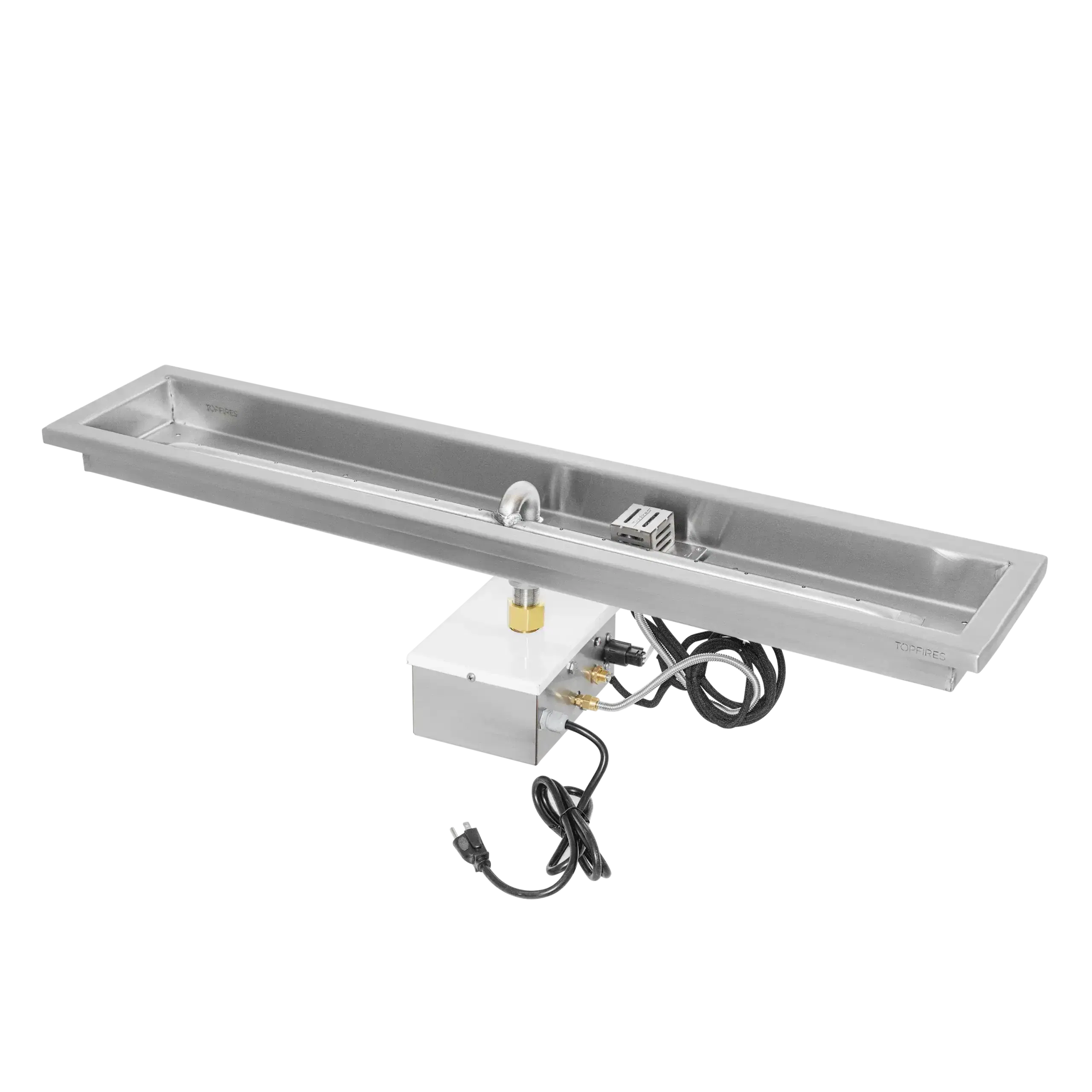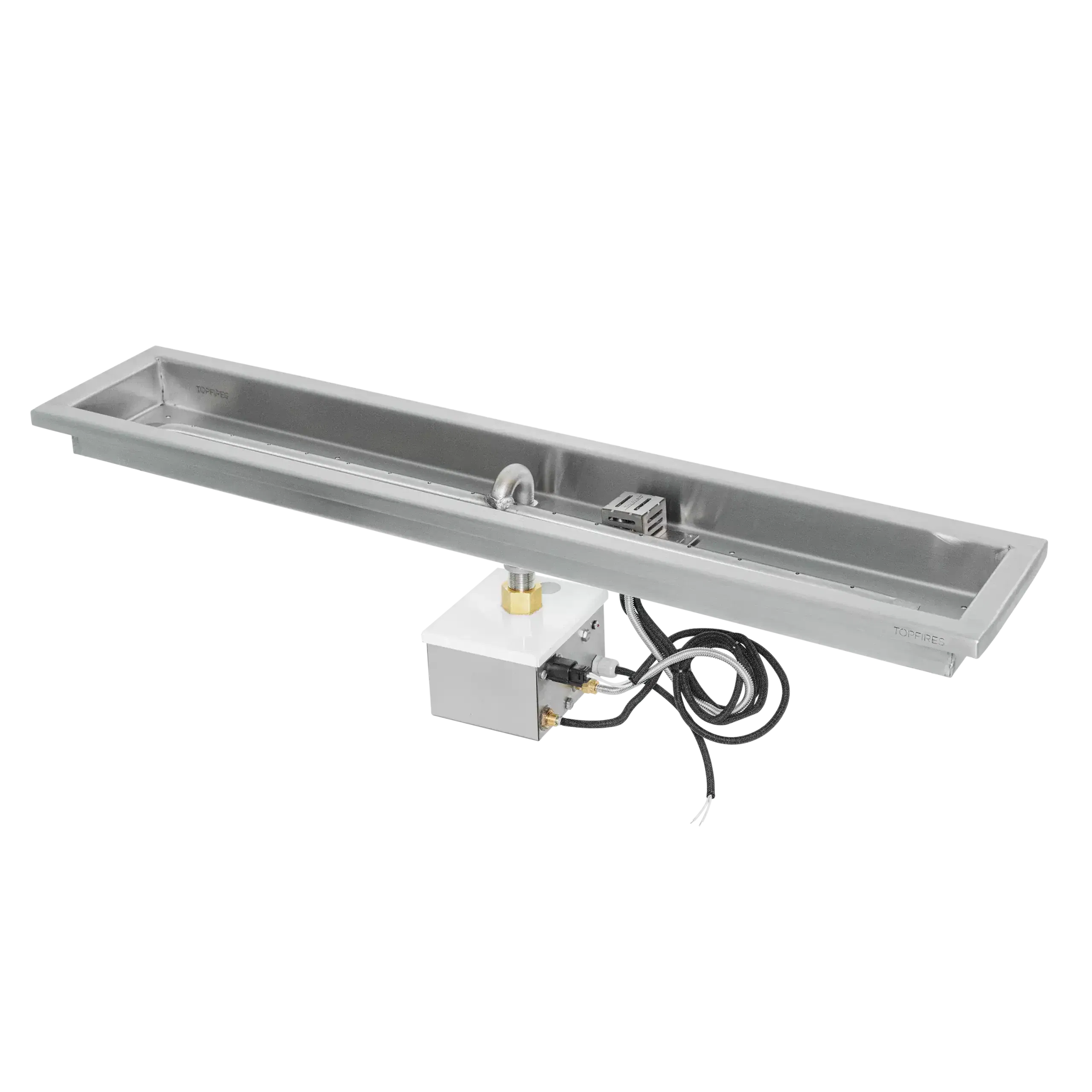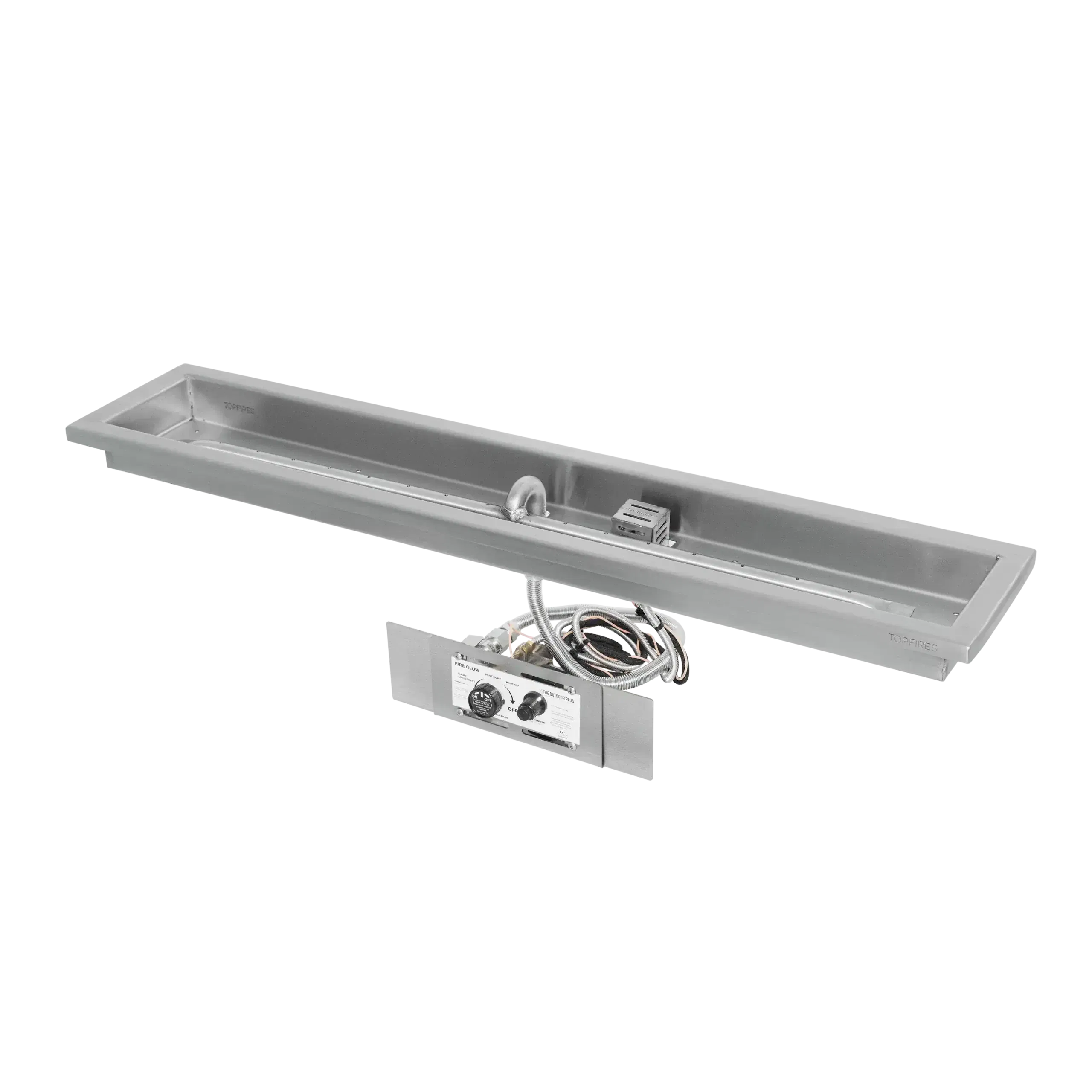 The Raised Lip Rectangular Drop-In Pan & Linear SS Burner by The Outdoor Plus is a high-performance fire pit kit designed for effortless installation and superior water protection. It features a unique 1-inch raised center hub that keeps water and debris away from the burner ports, ensuring a reliable flame in all weather conditions. Handcrafted in the USA from 304-grade stainless steel, this durable system includes a lifetime warranty on the burner and a 1-inch outer lip for a secure “drop-in” fit. Available in multiple sizes and ignition types, it is the ideal, low-maintenance solution for a sleek and professional linear fire feature.