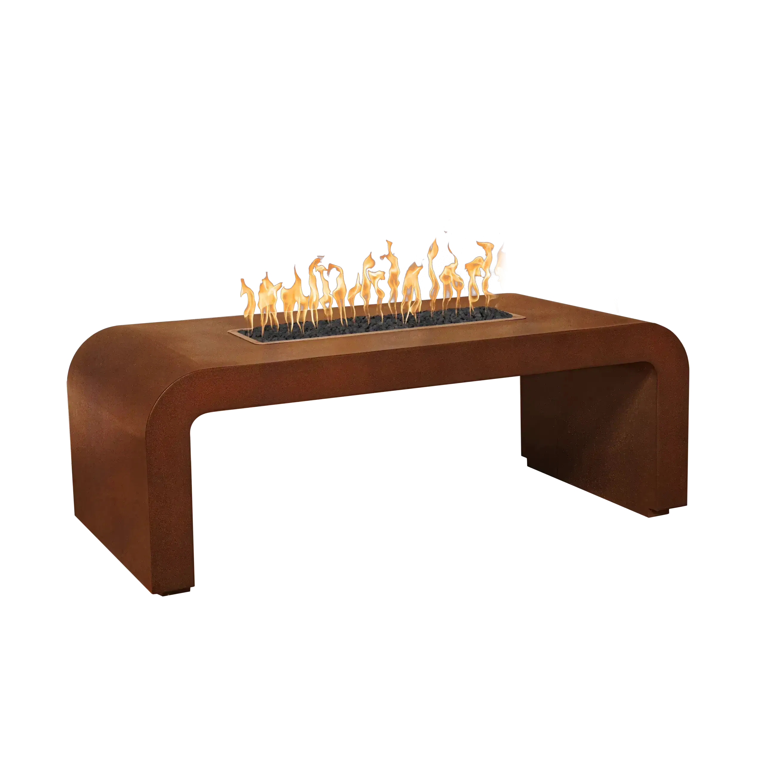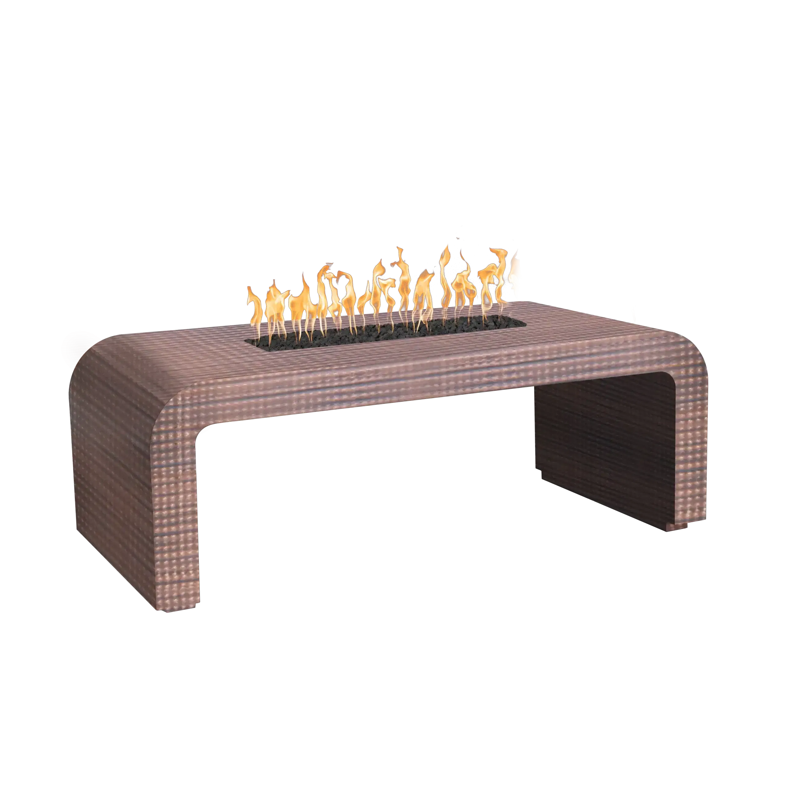 The Calabasas Metal Fire Pit is a luxurious, rectangular fire table offered in expansive lengths up to 96 inches for significant outdoor spaces. This unit is constructed from durable metal and is available in a wide selection of premium finishes, including multiple Powder Coat colors, Hammered Patina Copper, and rustic Corten Steel.