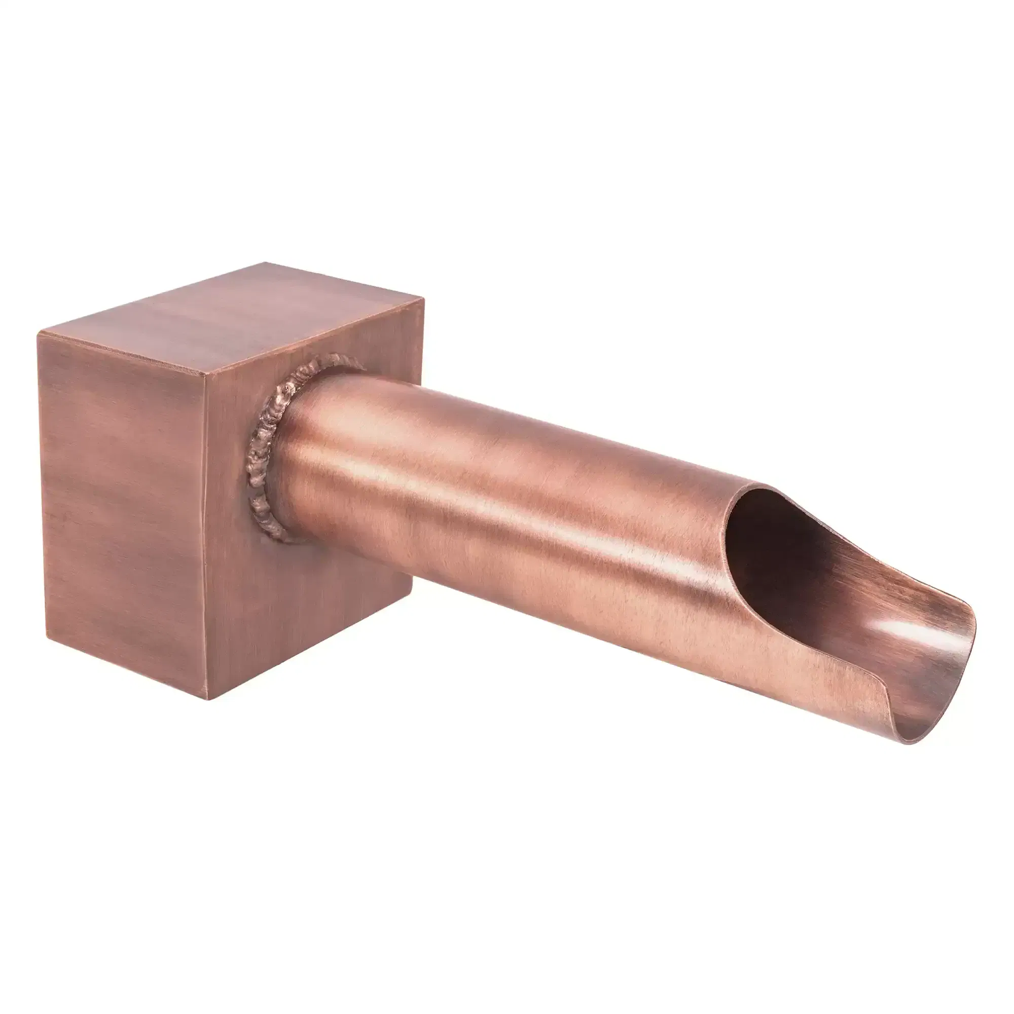 The Outdoor Plus Single V Scupper is a sleek, minimalist water feature designed to provide a precise and captivating water accent for modern outdoor spaces. Handcrafted in the USA, this scupper is meticulously formed from high-grade materials, available in either heavy-duty copper with a hand-applied dark patina or 316 marine-grade stainless steel to ensure exceptional durability in both chlorinated and saltwater environments. Its sharp, single-point “V” profile concentrates the water into a defined, elegant stream, delivering a flow rate of 7 to 9 gallons per minute per foot of width while creating a gentle, soothing auditory experience. Each unit is finished with a protective lacquer and comes standard with a 1.5-inch female inlet and a built-in bonding port for grounding wires. Available in widths ranging from 4 to 8 inches, the Single V Scupper offers a sophisticated, contemporary focal point that complements everything from minimalist urban gardens to luxurious traditional pool designs.