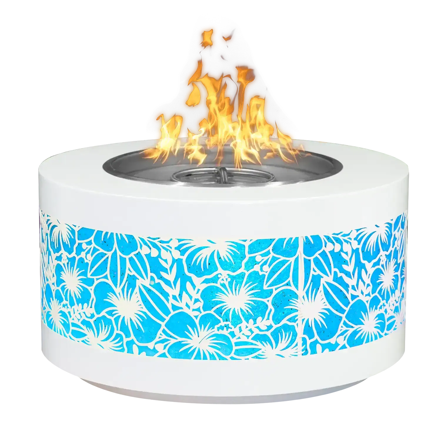 The Outdoor Plus Caribbean Fire Pit – Unity Edition 18” features controllable LED Lighting beneath its Powder Coated Steel frame. Featuring a tropical look that you and loved ones can all sit around and enjoy, the Caribbean Collection is sure to entertain. All TOP Fire Pits are individually handmade and proudly manufactured in the U.S.A. The fire pits we manufacture are durable and long-lasting in a variety of environments. Because of its handmade nature slight variations in color and texture may occur.