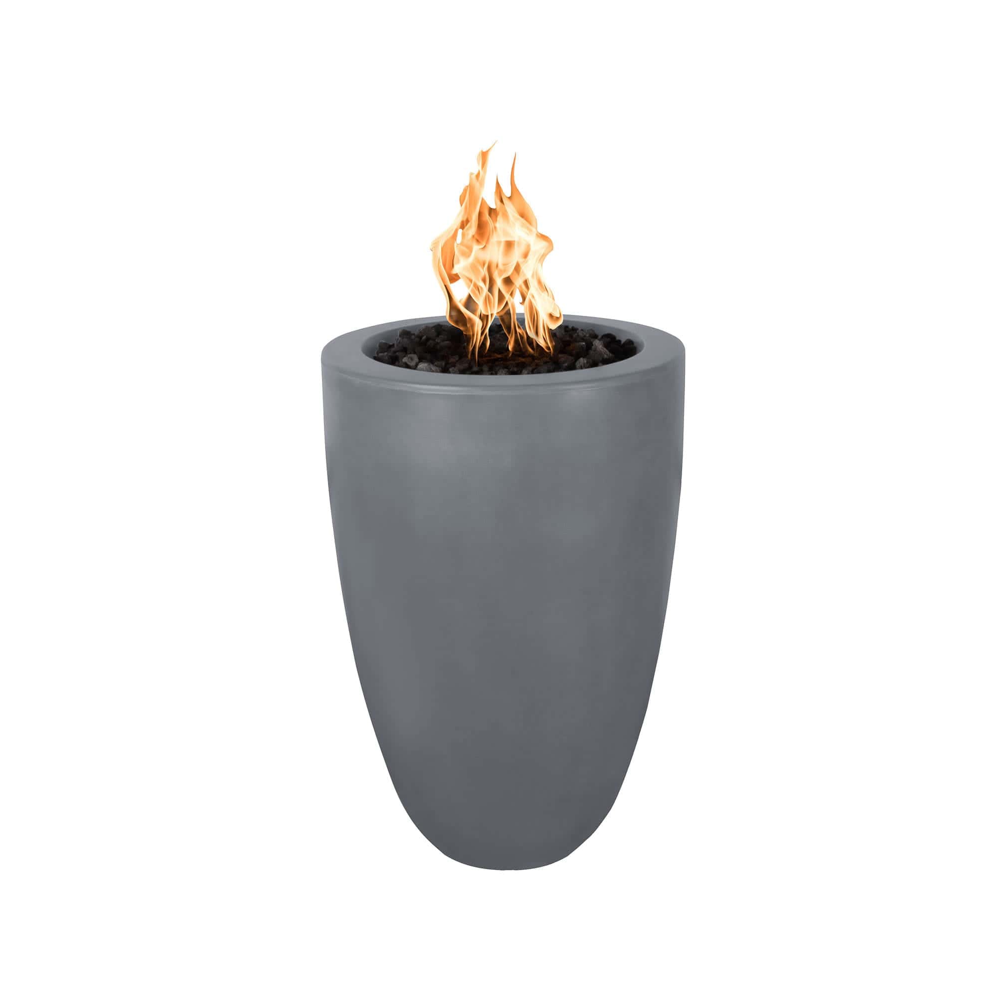 The Castillo Fire Pillar is a square fire feature constructed from GFRC (Glass Fiber Reinforced Concrete) and is designed for high durability in outdoor environments. Its physical dimensions are 22″ in length, 22″ in width, and 33″ in height, with a substantial BTU output of 45,000. It is offered in an extensive range of GFRC colors, spanning smooth, metallic, and rustic finishes such as Black, Brown, Bronze, and Natural Gray.