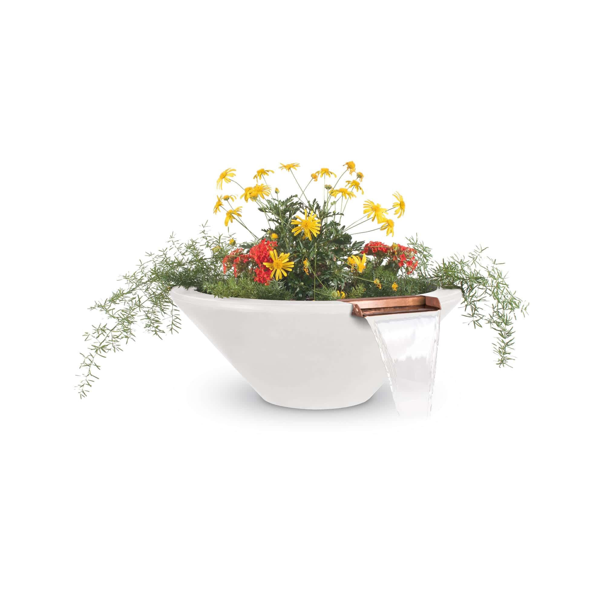 The Cazo Planter & Water Bowl is a modern take on the traditional tapered square bowl. It has a gorgeous curved structure made from Glass Fiber Reinforced (GFRC) Concrete that is sure to withstand the elements and provide a visual pleasure to you and your guests. Our Fire & Water Features are individually handmade and proudly manufactured in the U.S.A. The fire & water features TOP manufactures are durable and long-lasting in a variety of environments. Because of its handmade nature slight variations in color and texture may occur.