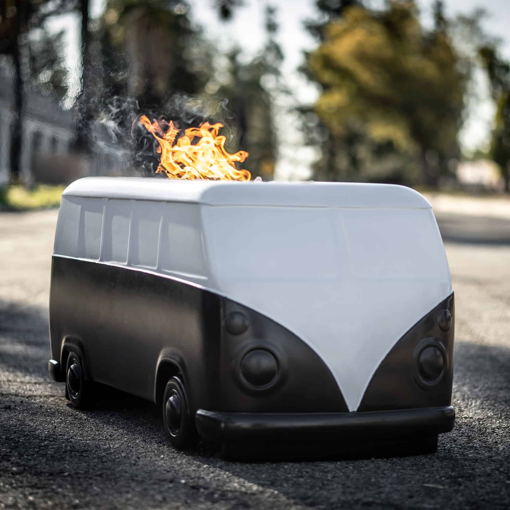 The Classic Bus Fire Pit, part of The Outdoor Plus’s Black & White Collection, is a distinctive fire feature primarily constructed from high-performance GFRC Concrete. This material ensures superior strength, durability, and a lightweight build compared to traditional concrete. The unit is fully customizable, offering compatibility with both Liquid Propane and Natural Gas. Customers can choose their preferred operation method from a standard Match Lit Ignition or CSA-certified electronic systems like Low Voltage Electronic Ignition and Plug and Play.