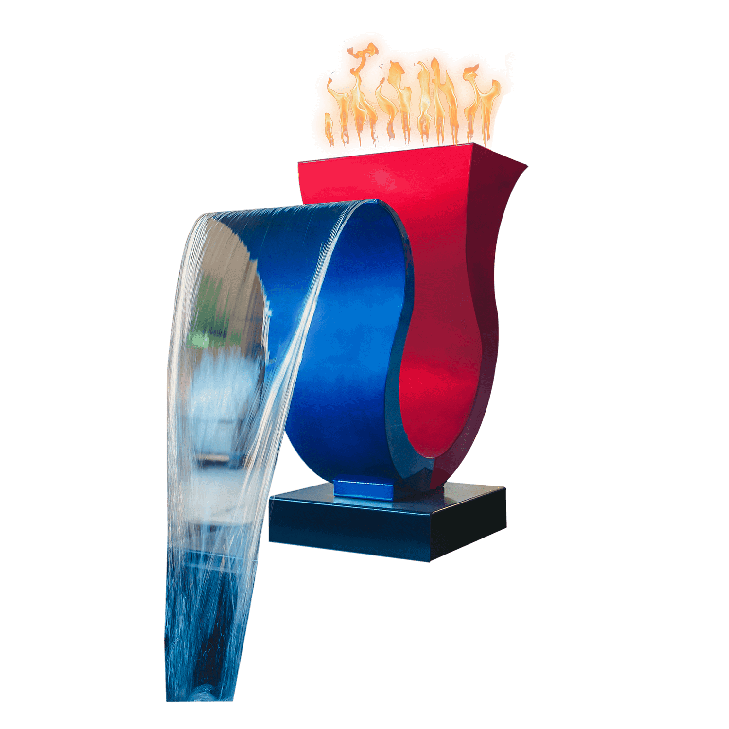 The Designer Series Feature 13 from The Outdoor Plus is a commanding fire and water feature that serves as a grand focal point for high-end outdoor environments. Measuring 28” L x 18” W x 34” H, this architectural scupper combines the dynamic visual of dancing flames with the soothing sound of a cascading water stream. Handcrafted in the USA from heavy-duty metal, it is finished in a premium powder coat that can be customized with separate colors for the “Fire Tower” and “Water Tower,” with options including Silver Vein, Sapphire Blue, and Copper Vein.