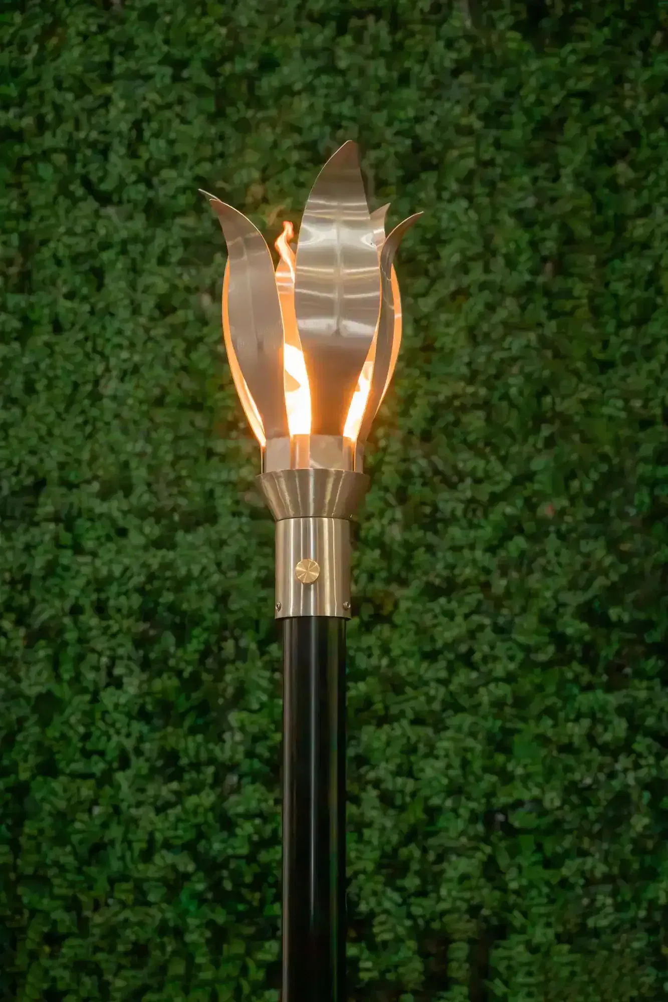 The Flower Fire Torch by The Outdoor Plus is an elegant, individually handcrafted fire feature designed to add a decorative and functional glow to any outdoor setting. Constructed from high-grade 304 stainless steel or black Corten steel, this torch is built for exceptional durability against intense heat and the elements. Standing 14 inches tall with a 10-inch diameter, the Flower Fire Torch features a unique floral-inspired design that enhances its visual appeal.