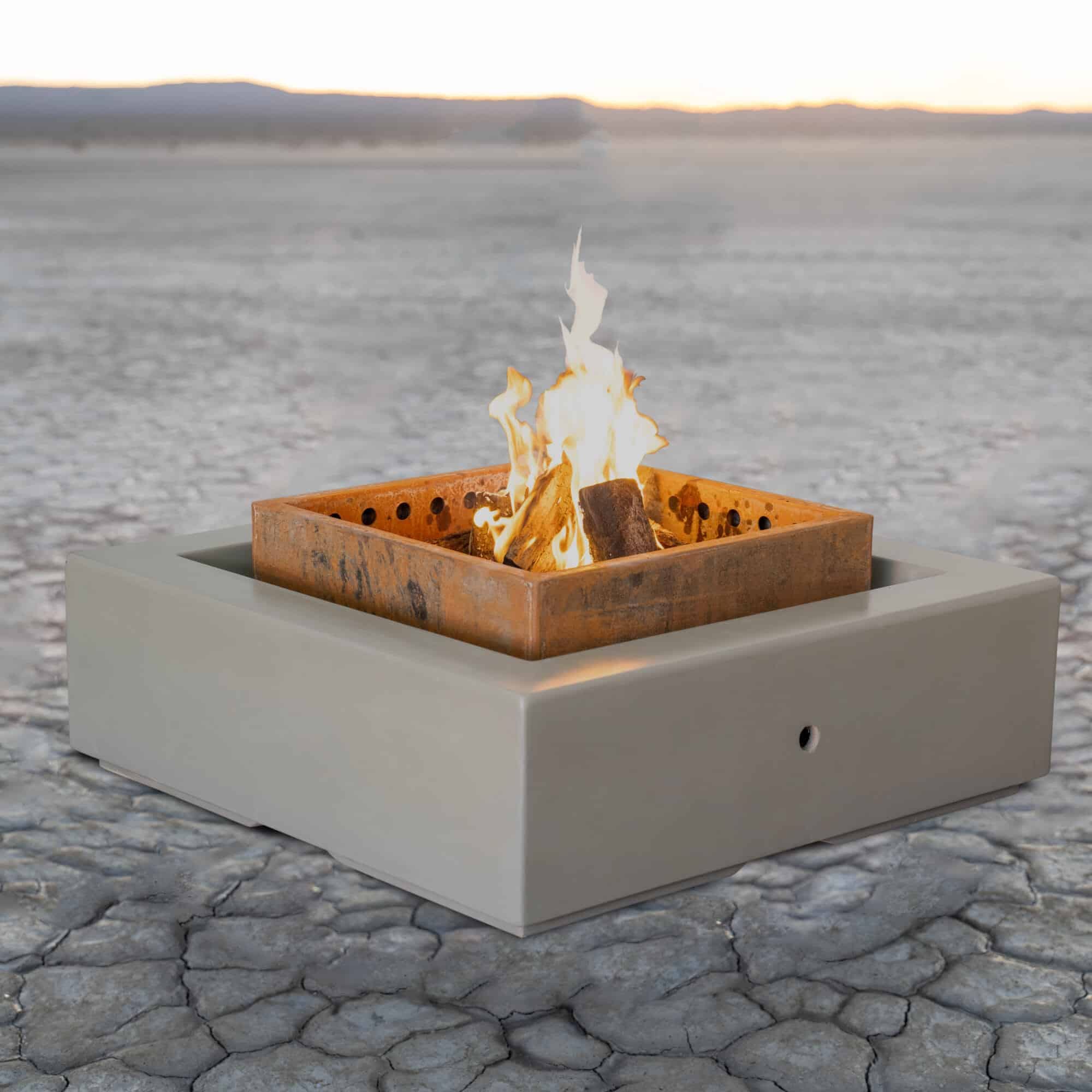 This ensures a clean, eco-friendly experience that allows guests to gather closely around the flames without the typical irritation of smoke. Handcrafted in the USA and measuring 42 inches square, the Solar serves as a heavy-duty, low-maintenance centerpiece that can be customized with various concrete finishes to seamlessly blend into any high-end modern or rustic landscape.