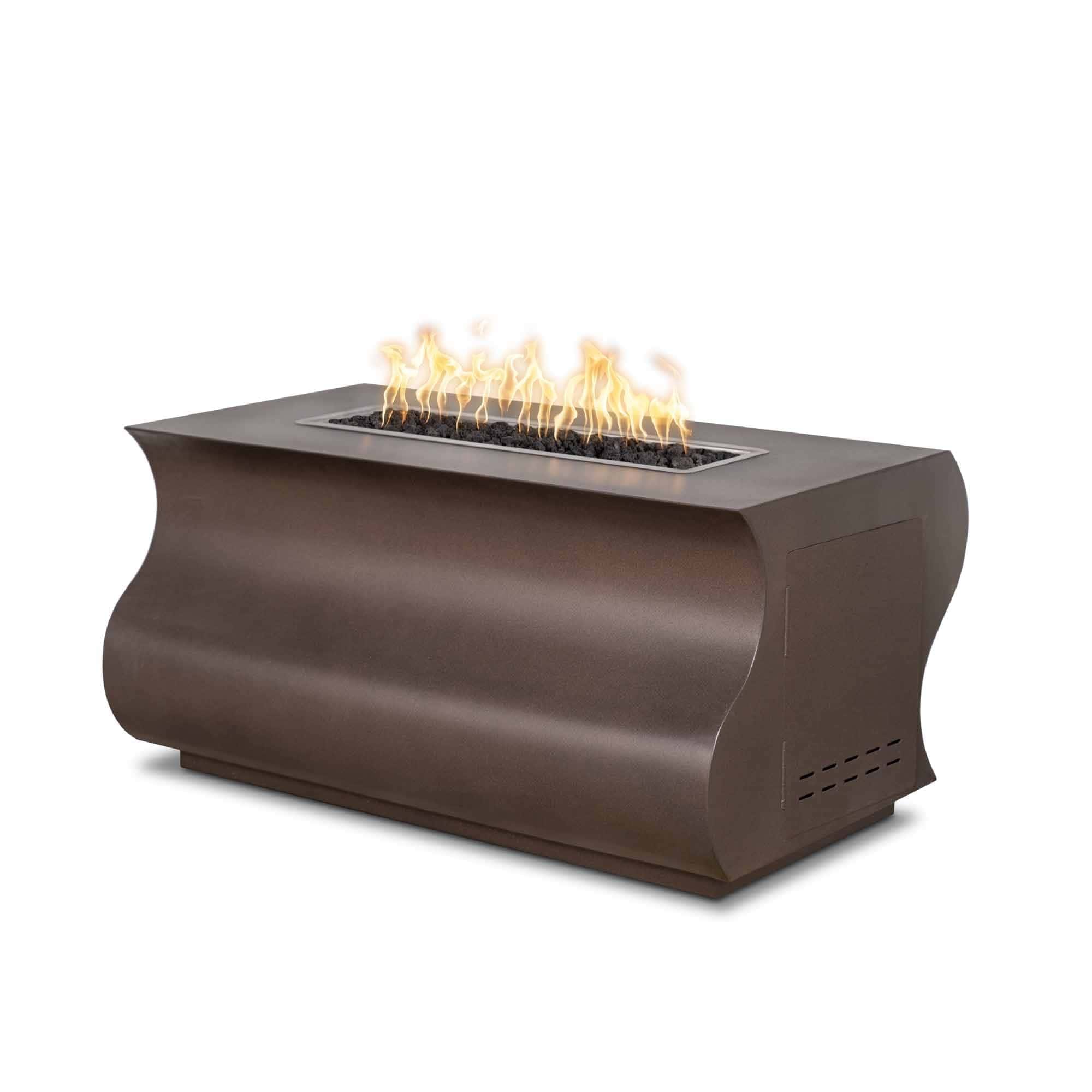 The Tidal Metal Fire Pit from The Outdoor Plus offers a contemporary and robust centerpiece for any luxury outdoor living space. Its sleek, rectangular design is crafted from durable, high-quality metals, ensuring resistance against the elements. Choose from Powder Coat colors, rich Hammered Copper, or industrial Corten Steel.