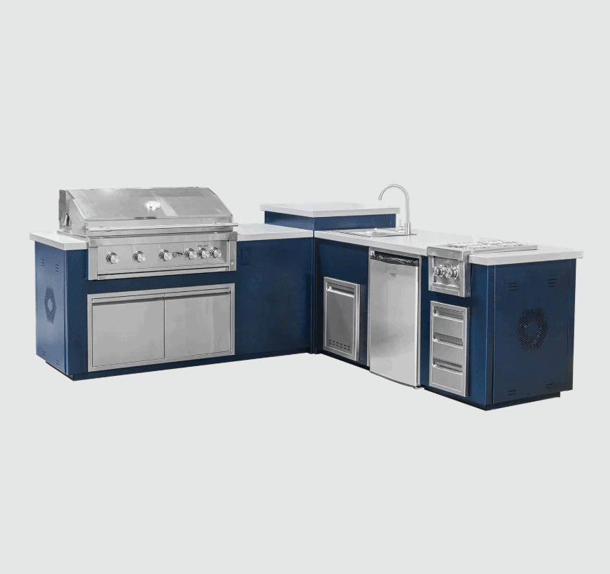 Videl Grills 112″ Maestro – L -B – Complete BBQ Island- Includes Gran Fuego 42″ BBQ Grill (5) Burner – 4.5 Cu Ft Fridge – Fuego I – Videl Double Side Burner – Outdoor Sink – Powder Coat